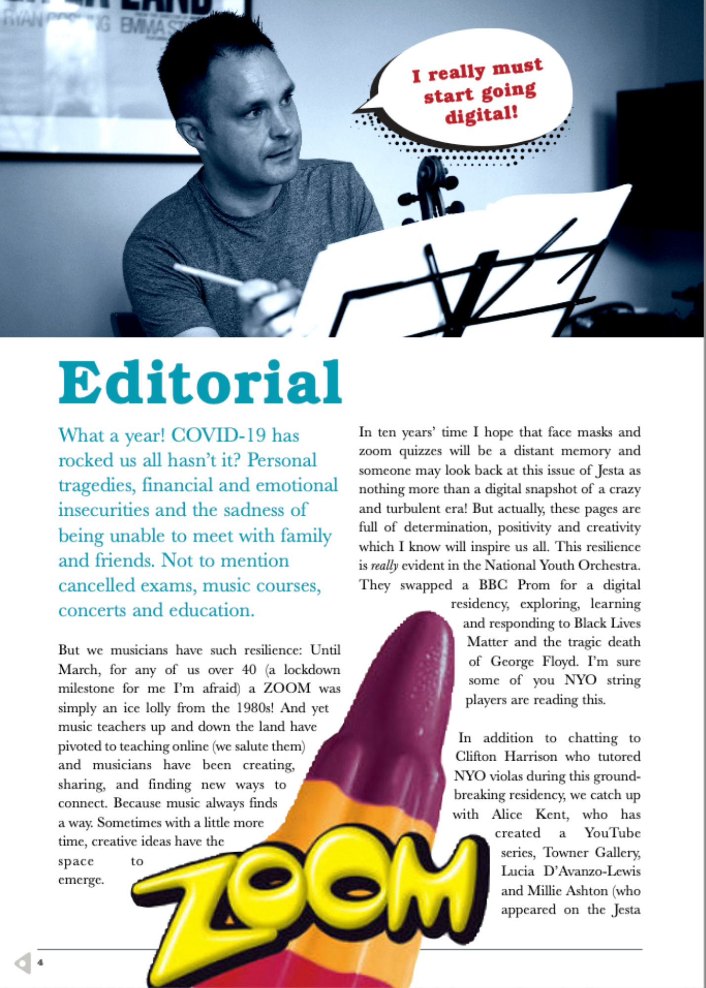 Editing and writing for Jesta Magazine is the best part of my role working for ESTA UK. This magazine is aimed at young string players. I’ve always tried to keep the articles interesting and really varied. It’s been a pleasure to chat to some of the best musicians around and hopefully put a magazine together that is inspiring for young people and adult readers alike!
